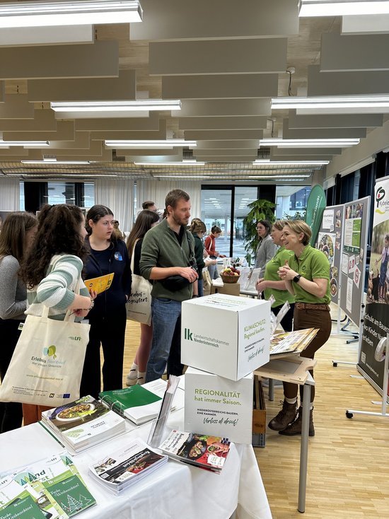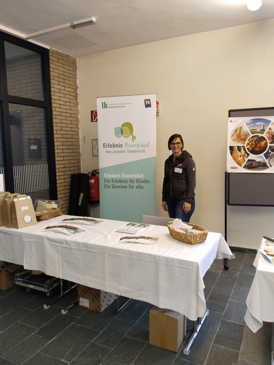 Bei den Aktionstagen „Schule trifft Bauernhof“ informierte die Landwirtschaftskammer Niederösterreich gemeinsam mit einigen Bäuerinnen und Bauern angehende Lehrerinnen und Lehrer über die zahlreichen agrarpädagogischen Angebote für Schulklassen. Dabei hatten sie eine Vielzahl an Flyern, Unterlagen und Unterrichtsmaterialien rund um die Themen Landwirtschaft, Forstwirtschaft, Umwelt und Ernährung im Gepäck. Ziel war es, den zukünftigen Pädagoginnen und Pädagoginnen die Vielfalt der agrarpädagogischen Programme vorzustellen und sie dazu zu motivieren, diese Inhalte in ihrem künftigen Unterricht einzubauen.