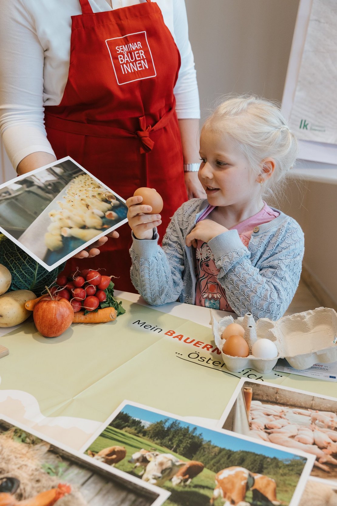 Der neue Workshop vermittelt Volksschulkindern den Wert der heimischen Landwirtschaft ganz allgemein und sensibilisiert zum bewussten Einkauf von regionalen und saisonalen Lebensmitteln. Dabei erarbeiten die Kinder, warum in manchen Teilen Österreichs Kühe auf den Wiesen grasen und es anderswo auf den Bauernhöfen keine Rinder, dafür aber Gemüse- und Ackerbau gibt. Dabei erfahren die Kinder, was unsere Landschaft mit dem Angebot an regionalen Lebensmitteln zu tun hat, also welchen Einfluss die geografischen Voraussetzungen auf die regionale Landwirtschaft haben, welche Pflanzen kultiviert werden und welche Tierarten sich in einer bestimmten Region besonders wohlfühlen. Die Kinder erkennen den Zusammenhang zwischen der vorgegebenen Natur und regionalen Produkten, die in ihrer Heimat angeboten werden. Sie lernen, wie heimische Lebensmittel gekennzeichnet werden und warum der Griff zu regionalen Produkten für die gesamte Gesellschaft wichtig ist.